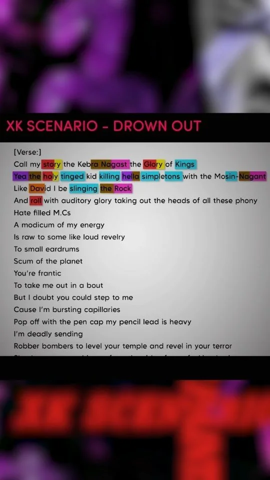 Shout out @oceanwaves95 on youtube for making this lyric rhyme analysis vid.